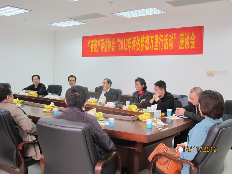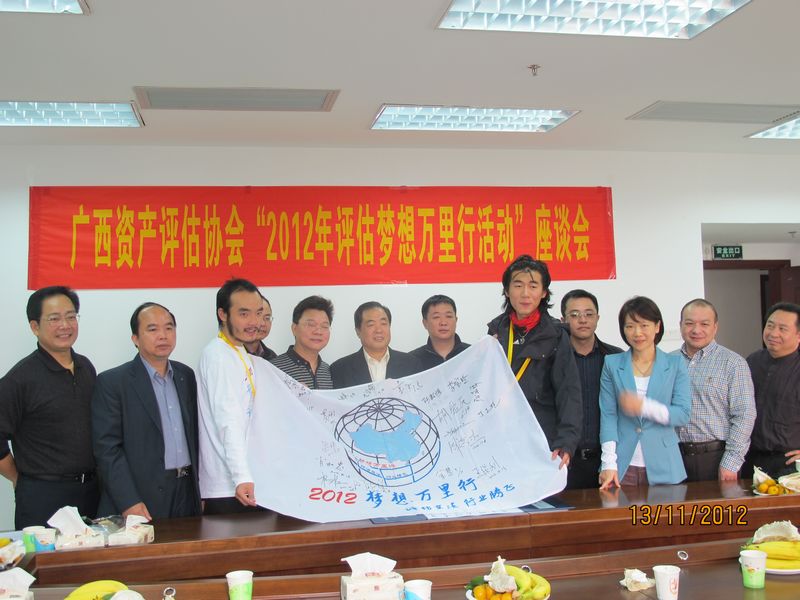 本次活动,得到了协会领导、评估机构负责人的高度重视和热情接待,广西资产评估协会会长王保利、广西桂科资产评估有限公司董事长、广西资产评估协会副会长王志强、广西资产评估协会副秘书长黄彩立等亲切接待了两名使者,并组织召集了在南宁的部分资产评估机构负责人和协会全体员工进行了座谈、互动交流。在座谈会上,大家对两位使者的到来表示热烈欢迎!并赠送广西具有特色代表性的礼物——绣球和壮锦,以表达对评估立法的大力支持,并对二位使者走遍全国,发扬“红军不怕远征难,万里千山只等闲”的精神表示钦佩。在座谈会中,两名使者介绍了骑行路线,分享了途径23个省市沿途的见闻和采访的感受后,大家围绕“评估立法·行业腾飞”的主题展开了关于广西评估行业的目前现状的感想、对全国业内评估立法形势的展望等话题畅所欲言,气氛热烈。就广西支持评估立法方面,大家认为评估立法的主要目的是为了更好的维护评估市场秩序,规范资产评估行为,对资产评估各方当事人合法权益和公共利益提供合法保护与有效地法律保障。因此,一致祝愿《资产评估法》早日出台,期盼资产评估行业发展宛如使者们走过的川藏线越走越高。