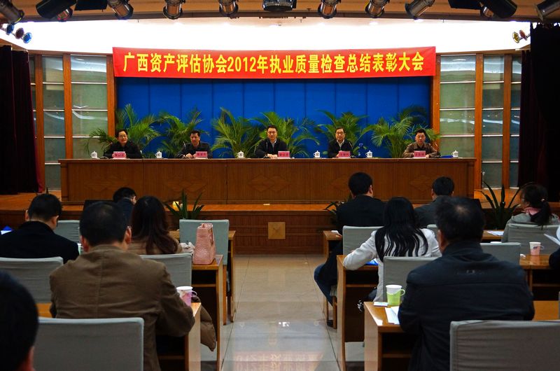 广西资产评估协会于12月12日在南宁召开了2012年执业质量检查总结表彰大会,自治区财政厅党组成员、副厅长曾纪芬出席会议并作题为《积极发挥行业监管职能 开创评估新局面而努力》的重要讲话,广西资产评估协会会长王保利代表协会秘书处做了题为《创新质量检查 强化评估自律》的执业质量检查总结报告,会上宣读了广西资产评估协会《关于表彰2012年执业质量检查工作优秀检查人员和被检查机构的决定》(桂评协〔2012〕68号),并对获奖的黄朝明、兰桂梅、罗华涛等25名个人和立信、金正、天华三个机构进行了颁奖。