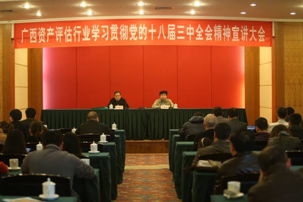 3月18日下午,在十二届全国人大二次会议、全国政协十二届二次会议圆满闭幕之际,为与时俱进,学习贯彻落实党的十八届三中全会精神,在新的历史起点上推动行业发展,广西资产评估协会举行了广西资产评估行业学习贯彻党的十八届三中全会精神第二次宣讲大会。特邀请自治区宣讲团成员、自治区财政厅党组成员、副厅长范世祥同志作宣讲。