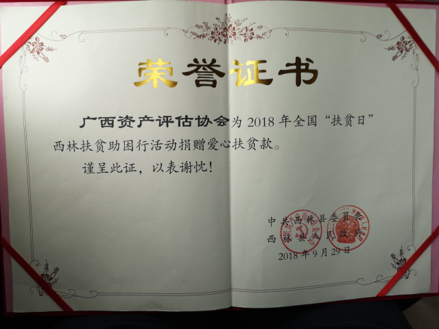 参与脱贫攻坚,既是社会组织的重要责任,又是社会组织服务国家、服务社会、服务群众、服务行业的重要体现,更是社会组织及企业发展壮大的重要舞台和现实途径。广西桂科资产评估有限公司作为一家耕耘二十余年的资深专业服务机构,在努力实现公司经营业绩的同时,不忘社会责任,积极发挥行业会员单位的模范带头作用,努力践行“服务社会,回馈社会”的信念,尽绵薄之力助推脱贫攻坚工作。