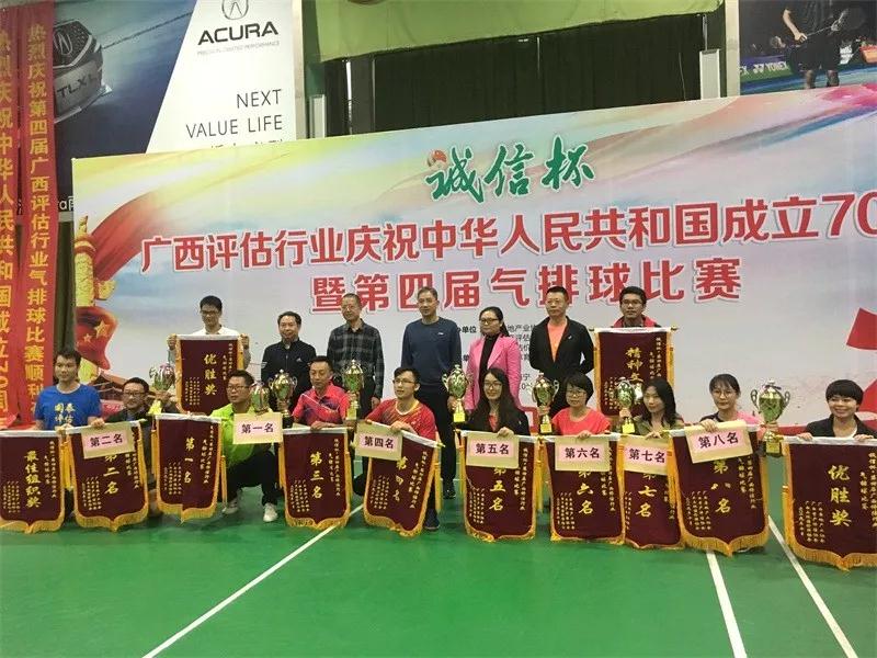 为庆祝新中国成立70周年,进一步开展“不忘初心、牢记使命”党的主题活动,建设和谐的资产评估人文化,展示广西评估人健康向上的精神风貌,提高资产评估行业的凝聚力,广西资产评估协会、广西房地产业协会、广西土地估价师协会于10月26日-27日联合举办了第四届“诚信杯”气排球比赛,共有47支队伍,400余名运动员参加比赛。