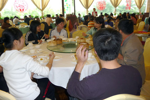 8:30分,茶话会准时开始。在沃顿国际大酒店坐下后,大家一边品尝美味可口的早点,一边谈着春节趣闻,还一边对新到来的这一年做简略的规划。说到开心的地方,一桌子人都笑开了怀,说到严肃的地方,大家又都像会议中的认真听众一样帮忙出谋划策,几个桌子人还分别走“桌”串“椅”地互相交流,整个场面其乐融融。