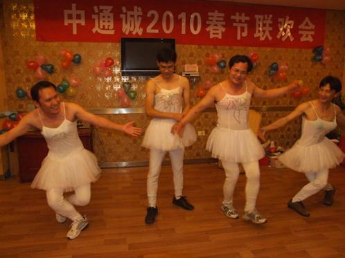 虽然金融危机的阴云尚未散去,但热情洋溢的中通诚公司依然阳光明媚,依然团结得如此紧密,坚不可摧。公司领导为了丰富员工的业余生活,打破了以往春节游园的传统,决定举办一场由公司员工自导自演的春节联欢会。员工们人人都很兴奋,在正式演出前一个月就开始紧锣密鼓地准备,挑选节目、寻找场地、安排演员、准备道具、购买奖品、自创台词、加紧排练,尤其在安排演员这个环节我们就进行了讨论、调查、推荐、选举四个步骤,还未确定人员,我们就已经断定咱们中通诚的春晚一定很精彩。果不其然,还未正式演出,排练的过程就已经让我们笑得人仰马翻。2月5日,许多员工的“第一次”都奉献给了中通诚联欢会,第一次导演、第一次主持、第一次表演、第一次反串、第一次……回想起联欢会的每一个节目都让我们乐不可支,下面的照片为我们留住了这些美好的瞬间。