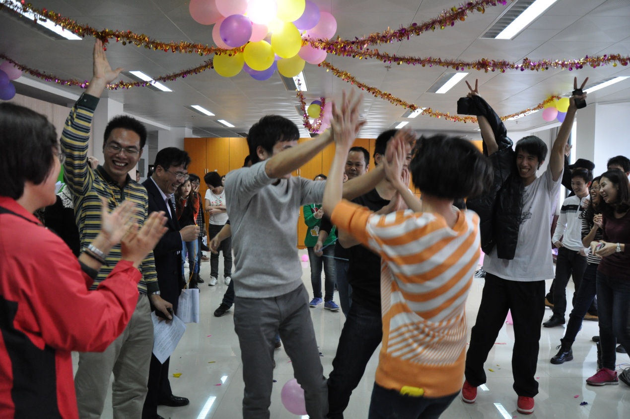 有了上午的首战告捷,大家对下午的友谊竞技更是充满期待。不到下午两点半,11楼的活动室已经陆陆续续站满了人,大家纷纷放下手头上的工作,或是在活动室两边与同事谈笑风生,或是在比赛区摩拳擦掌地为即将开始的游戏做准备。平日里难得齐聚一堂的同事们、朋友们都汇集在这里,大家的欢声笑语让今天的信达友邦分外热闹起来。