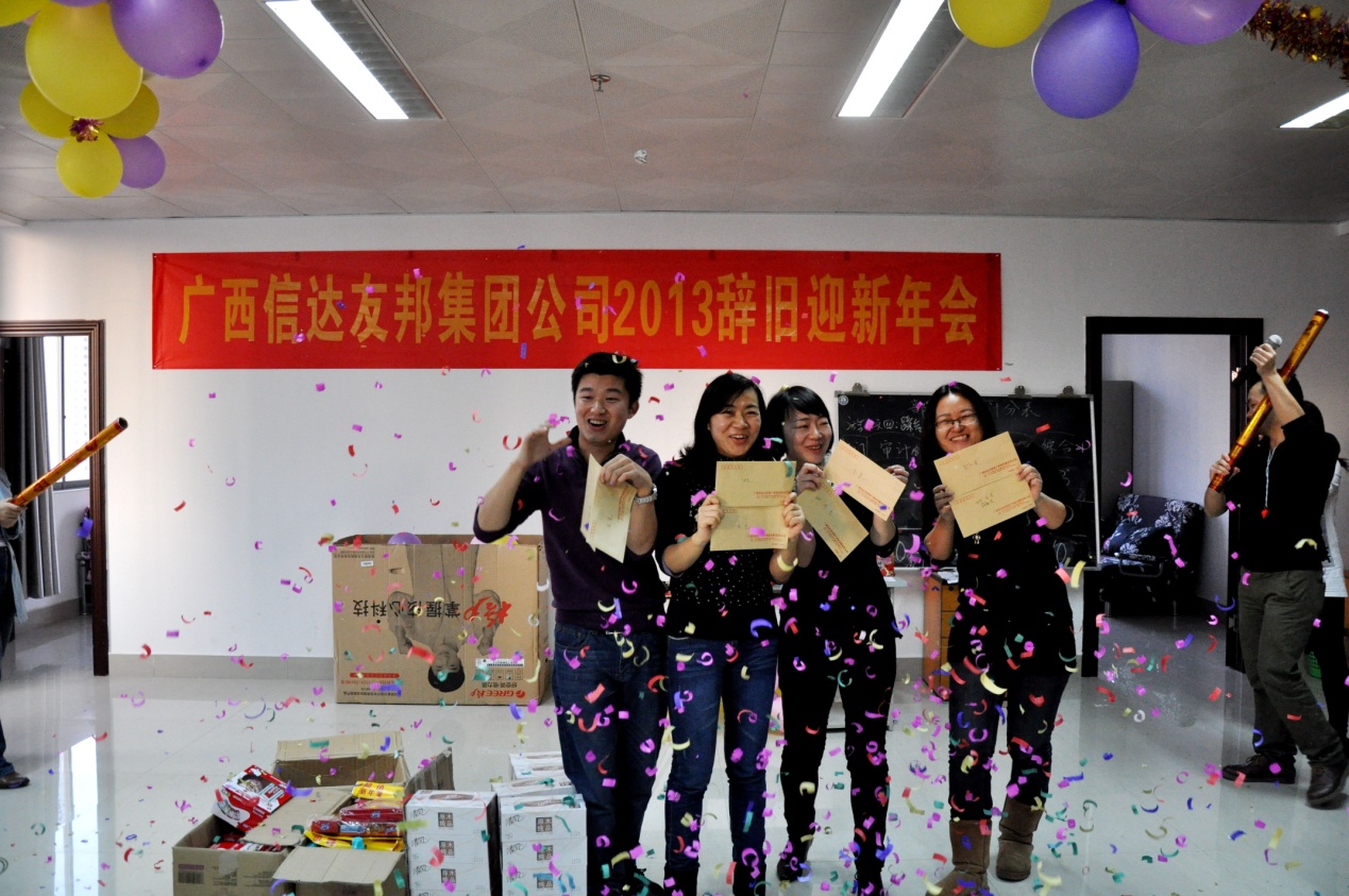 愉快的时光总是过得很快,短短一个下午的活动在大家的欢笑中走入尾声了。也许我们在明天、明年也仍要面对不同的客户、挑战困难的工作,但至少这一刻我们相聚在一起,暂时放下工作,放松自己,为辞别2012,迎接2013镌刻下美好的回忆。相信在2013年里,在信达友邦这样一个团结协作的大家庭里,我们的快乐不仅会迸发在新年会上,还会一直延续到今后工作生活的分分秒秒中去。